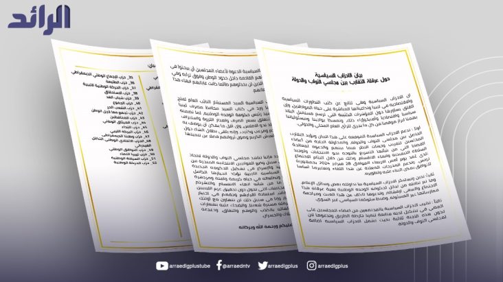 وناشدت الأحزاب في بيانها، مجلسي النواب والدولة اتخاذ خطوات عملية جادة في سبيل وضع القوانين الانتخابية المنجزة موضع التنفيذ والإسراع بتشكيل حكومة جديدة موحدة
