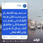 الأمطار تعود الليلة وغدًا للمناطق الشمالية الغربية