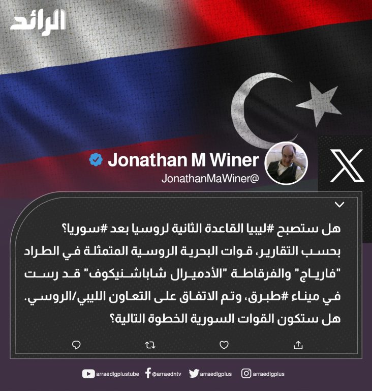 تعليقا على التطورات الأخيرة في #سوريا.. المبعوث الأمريكي السابق إلى #ليبيا “جوناثان وينر” يتساءل: هل ستصبح #ليبيا القاعدة الثانية لـ #روسيا بعد #سوريا؟