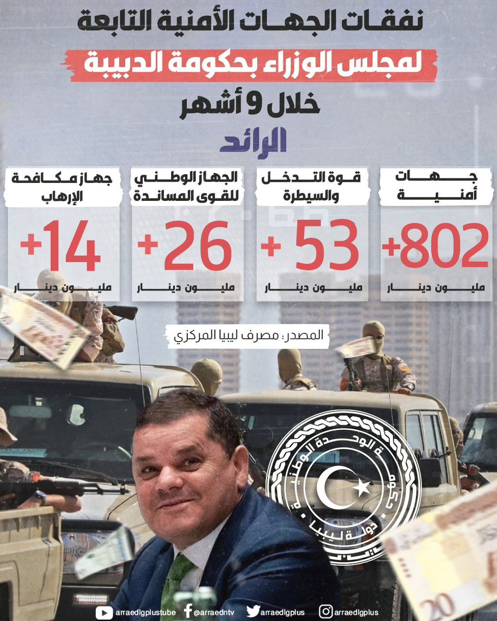 منها أكثر من 802 مليون دينار تحت بند “جهات أمنية”.. تعرف على نفقات الجهات والأجهزة الأمنية والعسكرية التابعة لمجلس وزراء حكومة #الدبيبة خلال 9 أشهر من 2025.