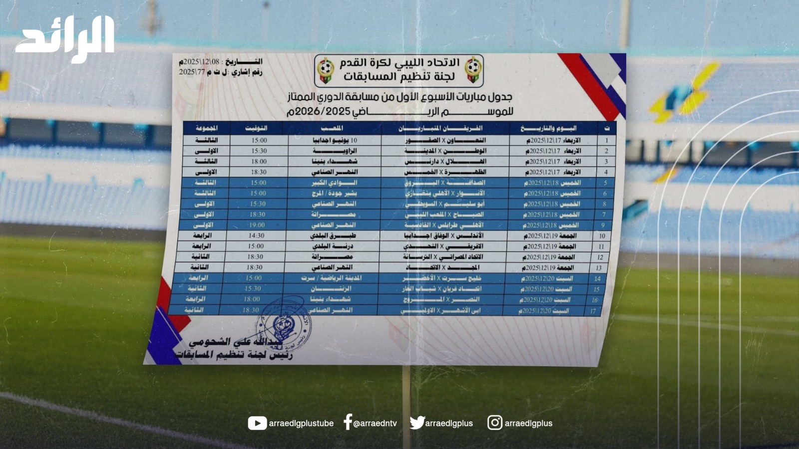 كشفت لجنة تنظيم المسابقات بالاتحاد الليبي لكرة القدم، عن جدول مواعيد وملاعب مباريات الجولة الأولى من منافسات الدوري الليبي الممتاز في نسخته الـ52، وذلك بإقامة 17 مباراة على 11 ملعبًا خلال أربعة أيام، ابتداءً من 17 ديسمبر الجاري وحتى 20 من الشهر نفسه.