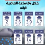 تقرير: كميات الأمطار المسجلة في محطات مؤسسة رؤية خلال 24 ساعة