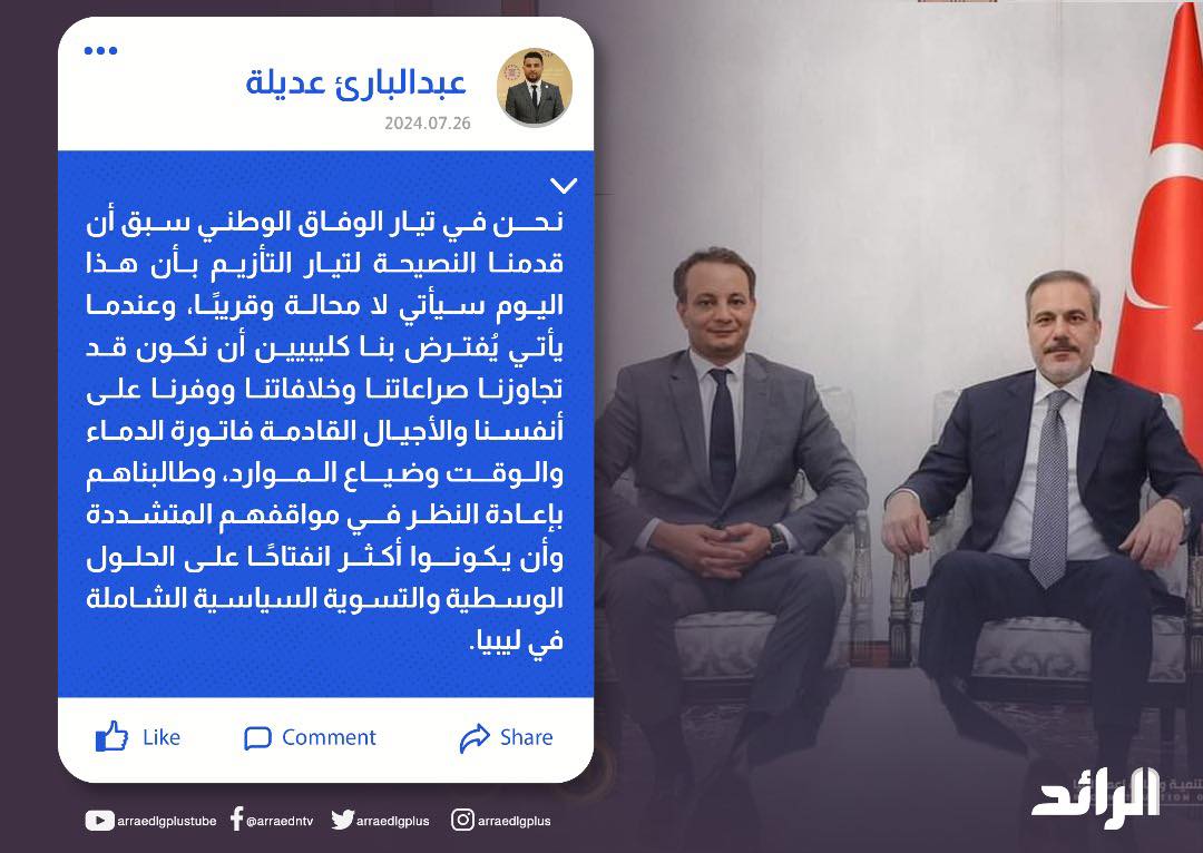 تعليقاً على لقاء “فيدان” و نجل حفتر