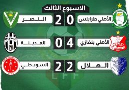 الجولة الثالثة من #الدور_السداسي تشهد فضّ الشراكة بين الأهلي طرابلس والنصر بانتصار الأخير بهدفين نظيفين ليقترب خطوة كبيرة نحو اللقب بابتعاده بصدارة الترتيب بـ 9 […] المزيد