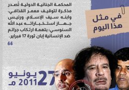 في مثل هذا اليوم “27 يونيو” من عام 2011 أصدر المدعي العام بالمحكمة الجنائية الدولية “لويس مورينو أوكامبو” أوامر اعتقال بحق “القذافي” وابنه سيف، ومدير […] المزيد