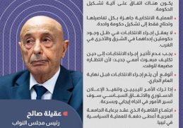 0 Votes in إنفوجرافيك عقيلة صالح: نحن على تواصل مع مجلس الدولة ويكاد يكون هناك اتفاق على آلية تشكيل الحكومة 0 نقاط Upvote Downvote