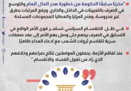 📌#الحزب_الديمقراطي: في ظل الانقسام السياسي تستمر قوى الأمر الواقع في التسابق في الصرف حتى وصل بهم الأمر إلى عقد صفقات سرية لتقاسم ثروات الشعب مع […] المزيد