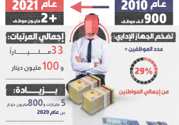 من 900 ألف موظف عام 2010 إلى أكثر من 2 مليون عام 2021، بلغ إجمالي عدد الموظفين في الجهات الحكومية، وفق التقرير السنوي لديوان المحاسبة، […] المزيد