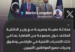 عقب تصريحاته الأخيرة.. السفير البريطاني لدى ليبيا “مارتن لونغدن” يقول، إنه بحث مع وزير الداخلية بحكومة الدبيبة عماد الطرابلسي، التحديات الأمنية في العاصمة وحقوق وحريات […] المزيد