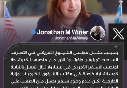 معلّقًا على انسحاب “جينيفر جافيتو” المرشحة لمنصب السفير الأمريكي لدى ليبيا.. المبعوث الأمريكي السابق إلى ليبيا جوناثان واينر يقول، إن عدم وجود سفير يجعل من […] المزيد