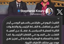 القائمة بأعمال رئاسة البعوث الأممية “ستيفاني خوري” تناقش مع السفير الروسي الدفع بالعملية السياسية في #ليبيا، وكسر الجمود السياسي. المزيد